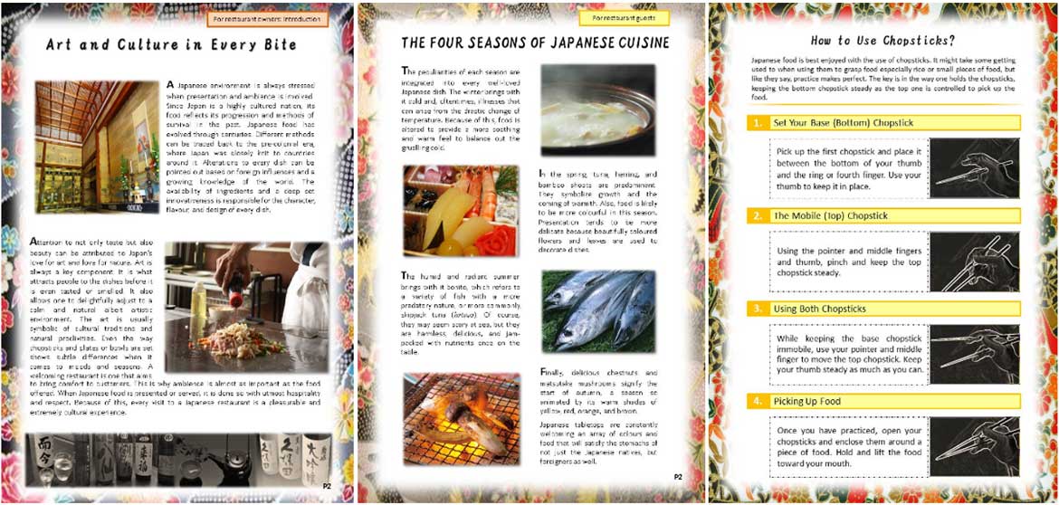 We design menu written in both your native language and its proper Japanese translation.