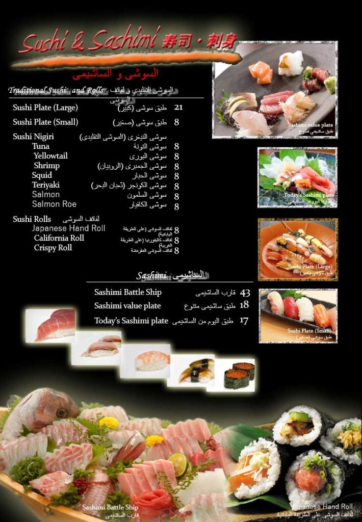 - Menu of Sushi and Sashimi